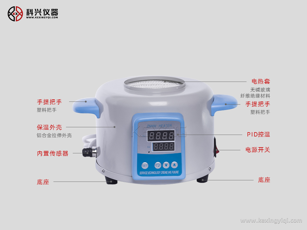 ZNHW型電熱套是用無堿玻璃纖維作絕緣材料,將Cr20Ni80合金絲簧裝置于其中,用硅酸鋁棉經(jīng)真空定型的半球形保溫體保溫,外殼一次性注塑成型,上蓋采用靜電噴塑工藝,由于采用球形加熱,可使容器受熱面積達(dá)到60%以上。控溫采用計(jì)算機(jī)芯片做主控單元,采用多重?cái)?shù)字濾波電路,模糊PID控制算法,具有測量精度高,沖溫小,單鍵輕觸操作,雙屏顯示,內(nèi)、外熱電偶測溫,可控硅控制輸出,160-240V寬電壓電源,并有斷偶保護(hù)功能,具有升溫快、溫度高、操作簡便、經(jīng)久耐用的特點(diǎn),是做準(zhǔn)確控溫加熱試驗(yàn)的理想儀器。